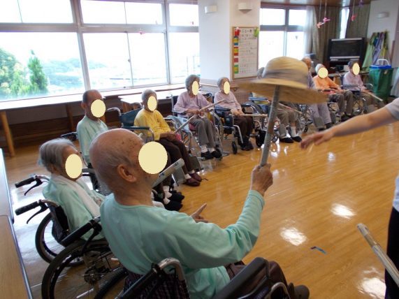 「棒体操」はその名の通り棒を使った上半身中心の体操で、身体の柔軟性の他、バランス感覚や反射神経・集中力を高める事ができ、転倒予防に効果があると言われています。今回A3病棟で初めて行いました。