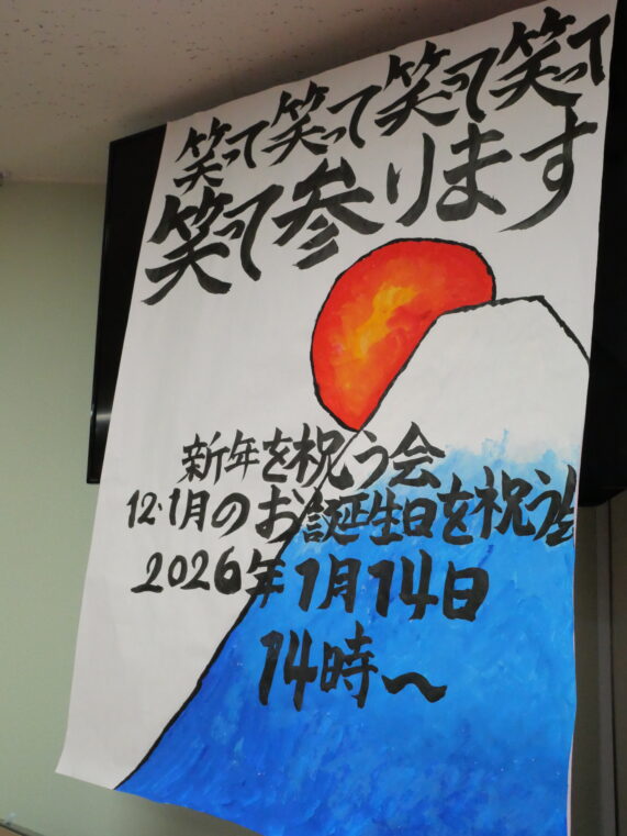 B2病棟では1月14日に新年を祝う会と12月1月生まれの方のお誕生日会を