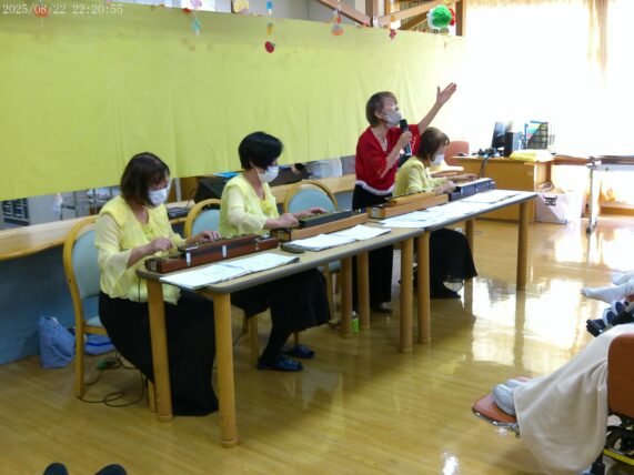 誕生日の利用者様のために、大正琴での「ハッピーバースデー」